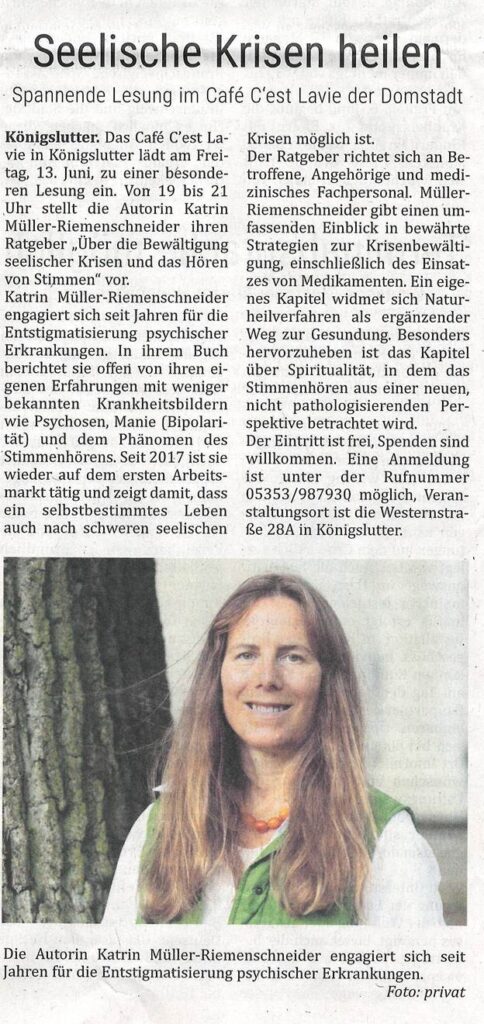 Zum Abschluß meine Öffentlichkeitsarbeit zur Entstigmatisierung psychischer Krankheiten, Manie und Stimmenhören.